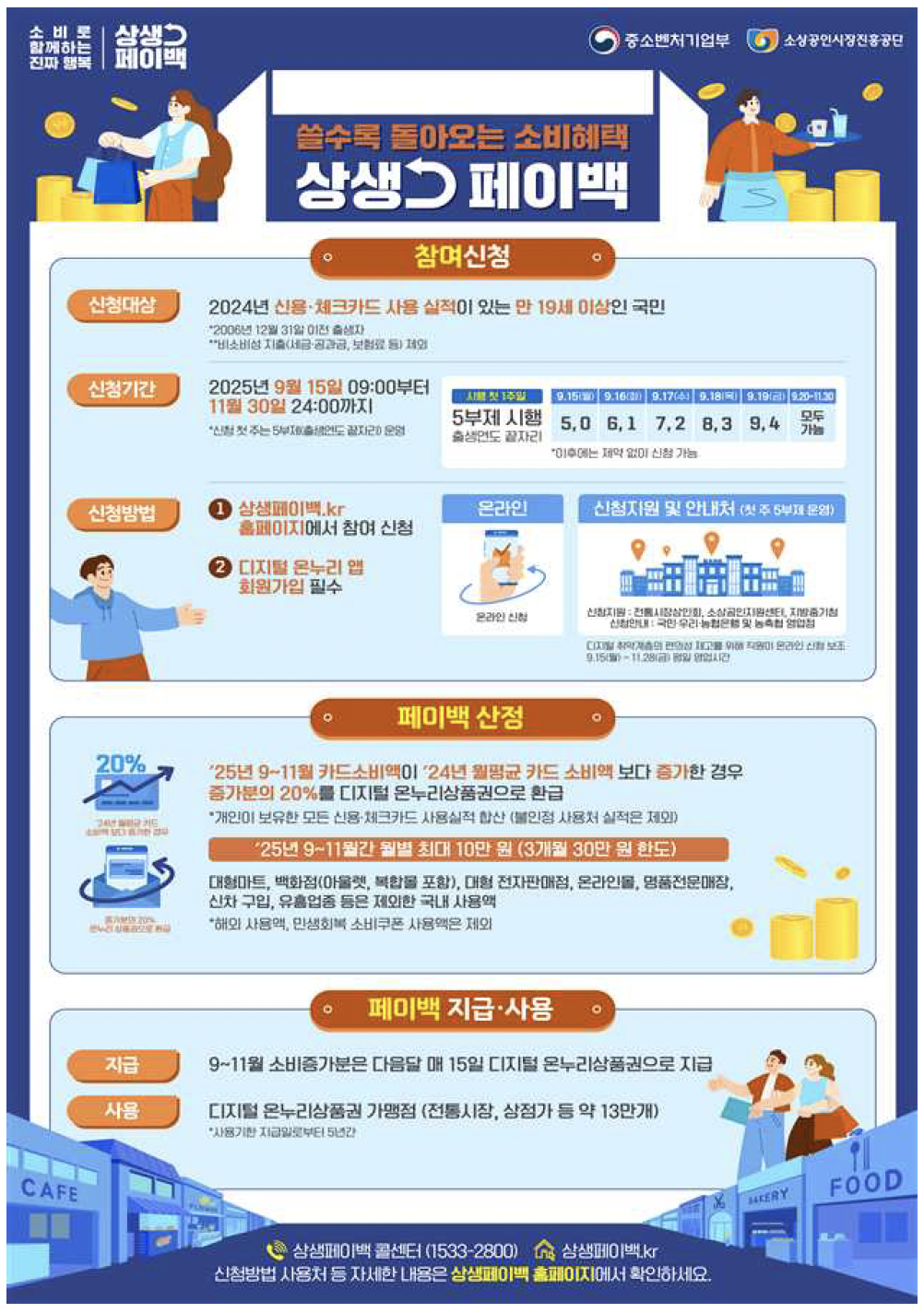 - 2025년 9월 15일 오전 9시부터 11월 30일 자정까지 '상생페이백 누리집'에서 신청가능
